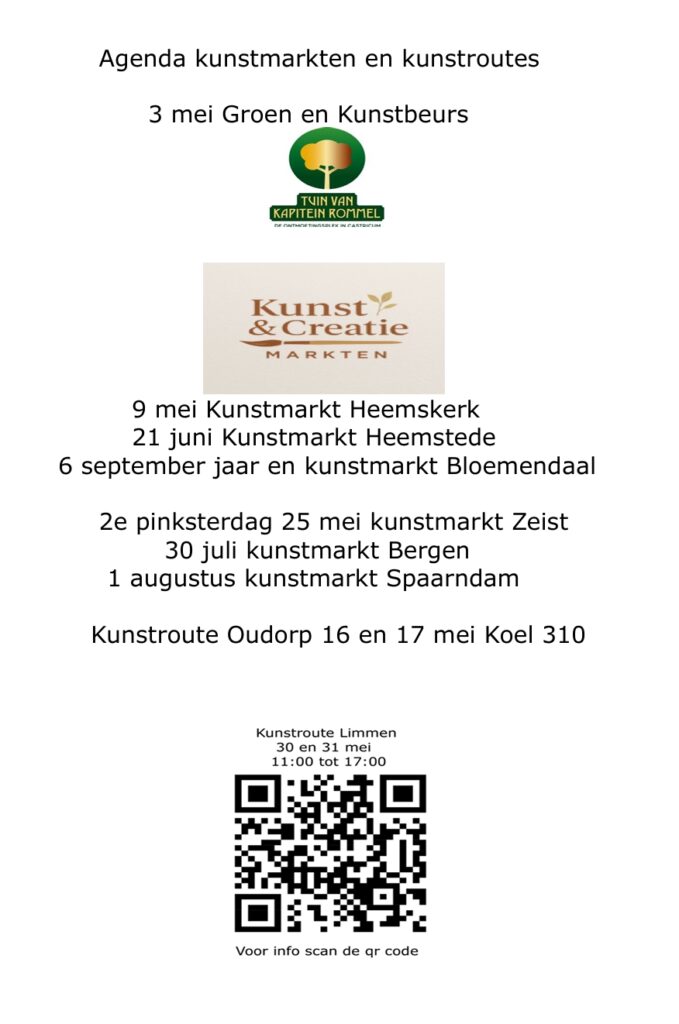 Na bericht te hebben gehad dat ik dit jaar ook welkom ben op de kunstmarkt in Bergen ben ik helemaal gelukkig! Een mooi seizoen met twee kunstroutes en 7 kunstmarkten. Ik hoop dit jaar weer nieuwe mensen te mogen ontmoeten aan mijn kraam en hopelijk dat er iemand blij naar huis gaat met een van mijn werken. Tot ziens op een van de markten of bij een kunstroute!