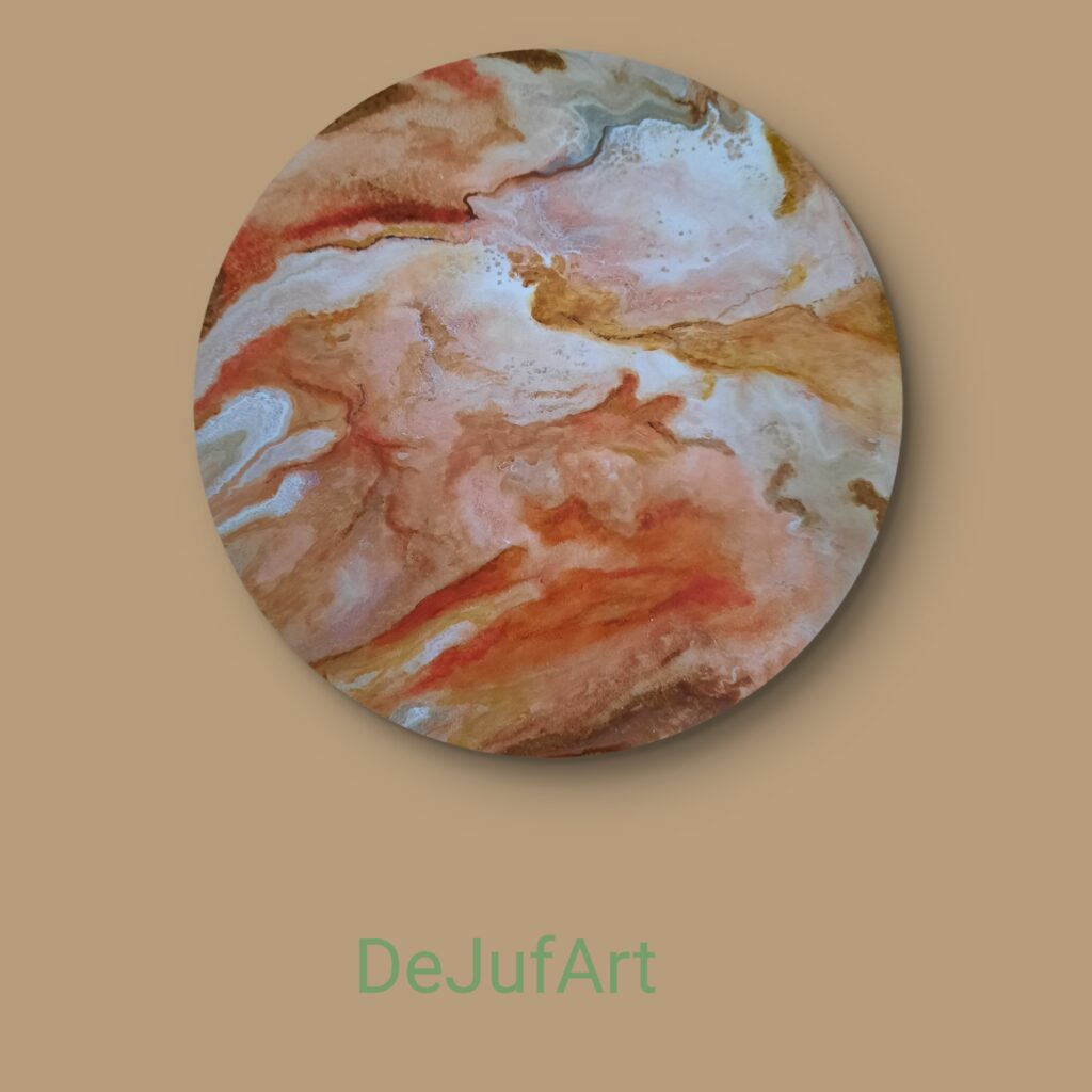 Een van de schilderijen die mij het ” WOW” gevoel gaf toen ik het op het doek zag verschijnen. Het doet mij denken aan een Edelsteen. Ik kan hier moeilijk afstand van doen omdat ik het zelf zo erg mooi vind. Ik krijg van elk doek die ik maak nooit een tweede precies zo.